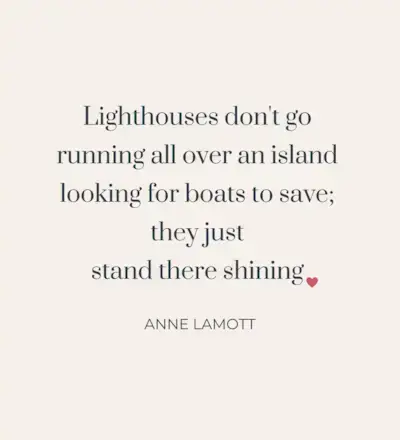 Myslete na všechnu energii, kterou ušetříte, když víte, jak říct ne běhání kolem a ujistit se, že je všechno v pořádku, a ano, když tam jen tak stojíte a záříte. A nedává smysl, že čím více chráníme svůj čas a energii, tím více musíme dávat sami sobě, což nám umožní zářit ještě jasněji? A když jasně záříme, nebudeme mít větší kapacitu pomáhat našim lidem a komunitám, starat se o sebe a užívat si život? Řekněte ne běhání a ano tomu, že jste maják.